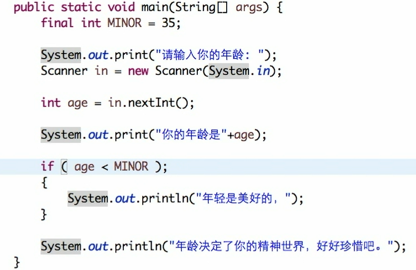如果if后面加上了分号,那么if语句就结束了,不管是否符合条件,都可以运行{}里面的语句;