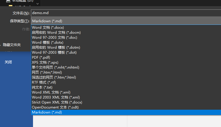 得到Markdown文件的方式也很简单,直接文件->保存/另存为。