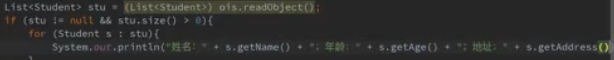 for循环是新建了一个s对象域遍历stu里面的值并输出