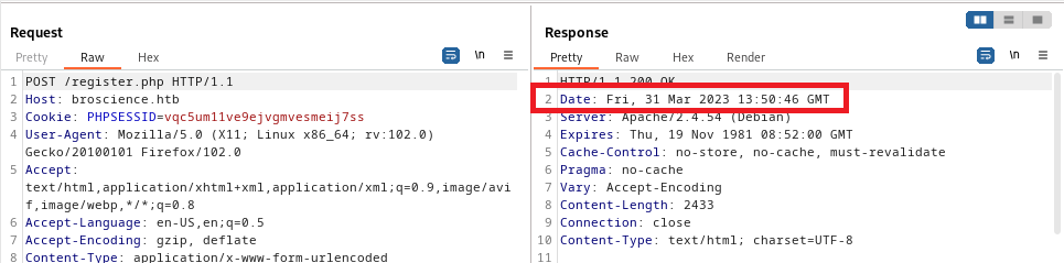 So here we are using the strtotime() function to output the time after register on burp