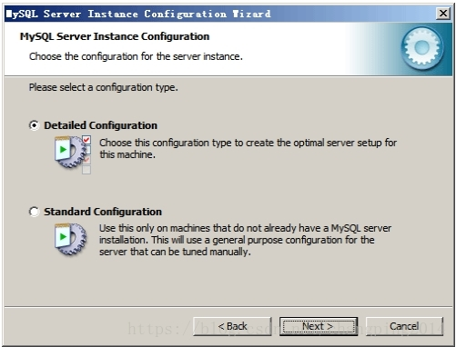 可以选择两种配置类型:Detailed Configuration(详细配置)和Standard Configuration(标准配置)。Standard Configuration(标准配置)选项适合想要快速启动MySQL而不必考虑服务器配置的新用户。详细配置选项适合想要更加细粒度控制服务器配置的高级用户。 如果你是MySQL的新手,需要配置为单用户开发机的服务器,Standard Configuration(标准配置)应当适合你的需求。选择Standard Configuration(标准配置)选项,则 MySQL Configuration Wizard(配置向导)自动设置所有配置选项,但不包括服务选项和安全选项。 Standard Configuration(标准配置)设置选项可能不符合我们的需求。如果系统上已经安装了其他版本的MySQL,那么建议选择详细配置。