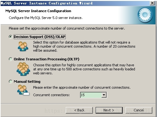 ·Online Transaction Processing(联机事务处理)(OLTP):如果你的服务器需要大量的并行连接则选择该选项。最大连接数设置为500。