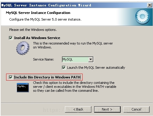 在基于Windows NT的平台上,可以将MySQL服务器安装成服务。安装成服务,系统启动时可以自动启动MySQL服务器,甚至出现服务故障时可以随Windows自动启动。 默认情况,MySQL Configuration Wizard(配置向导)将MySQL服务器安装为服务,服务名为MySQL。如果你不想安装服务,取消Install As Windows Service选项旁边的选择框。可以从下拉框选择新的服务名或在下拉框输入新的服务名来更改服务名。 要想将MySQL服务器安装为服务,但是不自动启动,不选中Launch the MySQL Server Automatically选项旁边的检查框。 Include Bin Directory in Windows PATH 选择该项的话就是讲bin目录放在windows的path中我们可以通过命令行来使用bin目录下面的可执行文件