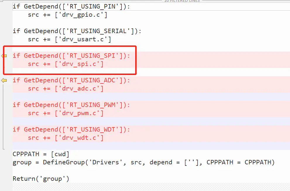 2、编写板级相关的代码,放在board_config.c中,板级初始化的代码完成初始化具体引脚等功能,通常由RT_USING_XXX这样的配置宏来控制编译。
