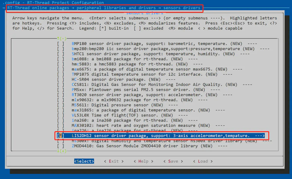 1、下载RT-Thread Sensor框架和内置的lis2dh12驱动。