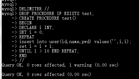 UNTIL i > 10 END REPEAT; // 结束循环的条件: 当i大于10时跳出repeat循环