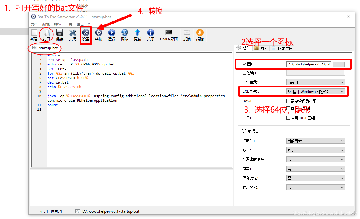 一般java程序需要一下命令执行,可以封装成bat脚本,但是并不友好,所有封装成exe