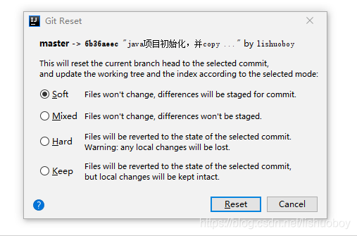意思就是,回滚后,仅仅是把本地库的指针移动了,而暂存区和你本地的代码是没有做任何改变的。而你上次改动已提交committed到本地库的代码显示是绿色即未提交