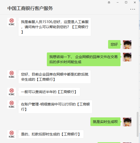 正式回单是交易次日产生,没有具体时间点的,取决于当天系统处理的。【客户】2020-3-12 15:38:16