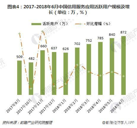 此外,信用类APP用户规模持续增长,也表明信用服务业的快速发展。截至2018年6月,我国信用服务应用活跃用户规模已达872万,环比增长3.9%。