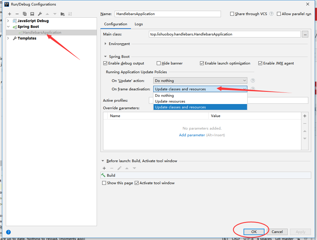 选择 update classes and resources。classes是java文件,resource是静态资源,比如html、css、image等