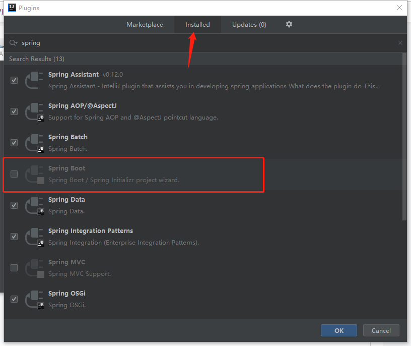 在settings -> Plugins 里面搜索spring boot,勾选上,然后再重启下idea,就可以了。如果Plugins里面没有spring boot的话,先安装下,再勾选