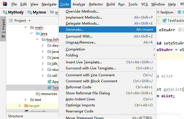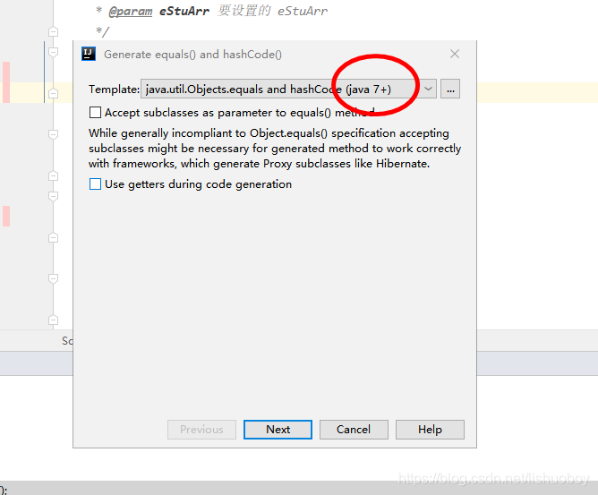 IDE快速生成equals 和 HashCode