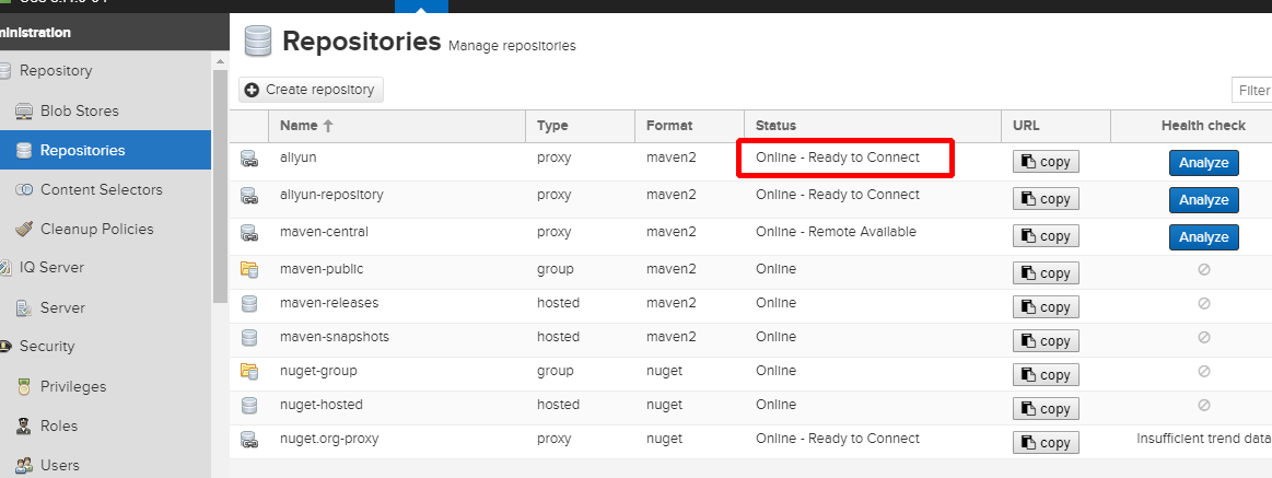 为Nexus配置阿里云代理仓库
