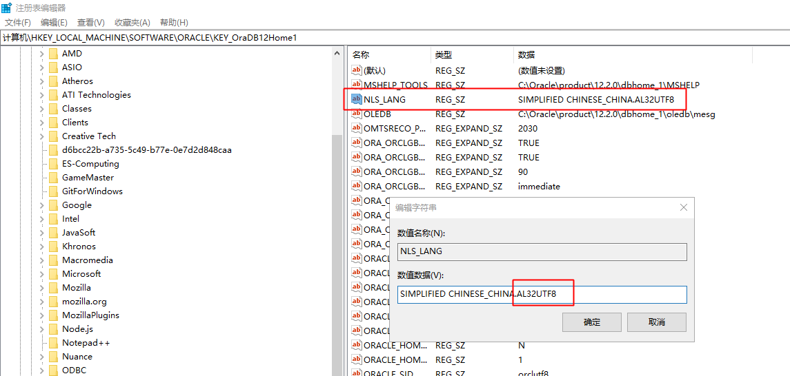 2、注册表修改oracle客户端编码,修改红框的编码即可