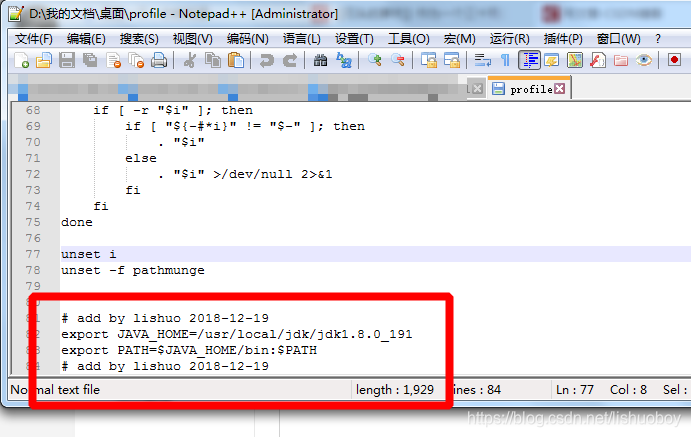 export JAVA_HOME=/usr/local/jdk/jdk1.8.0_191