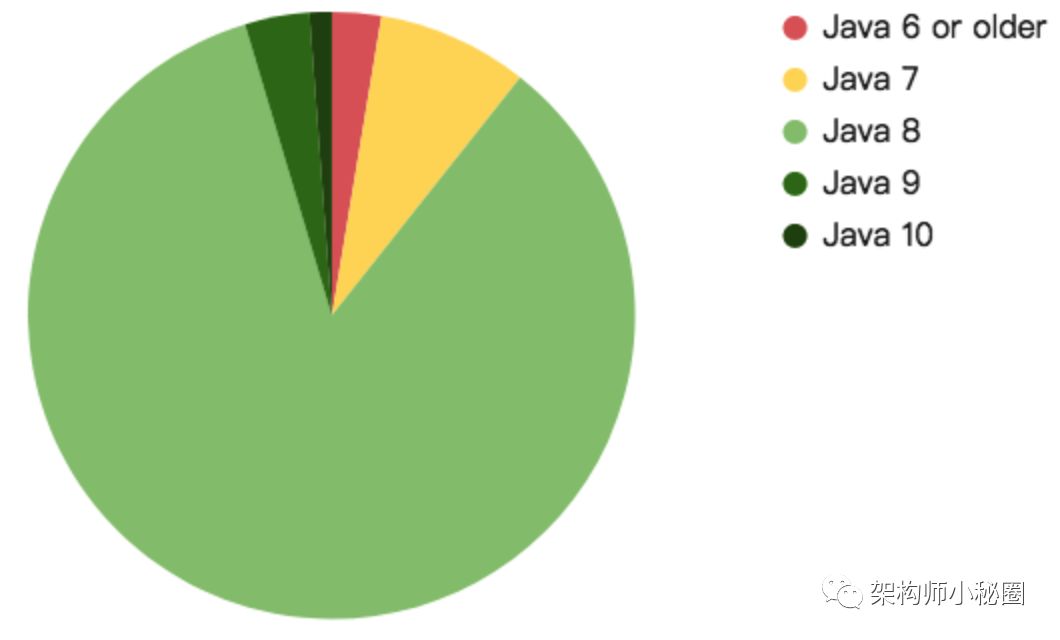 2017年,Java 7和更早的版本的数量大约是24.4%,现在是10.6%——所以生态系统显然正在升级,主要是升级到Java 8。
