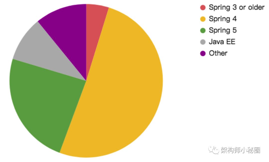 很多开发者,正在向Spring 5进行迁移,Spring 5的比例由去年的百分之2.2上升到今年的百分之24,这是一个明显的趋势!