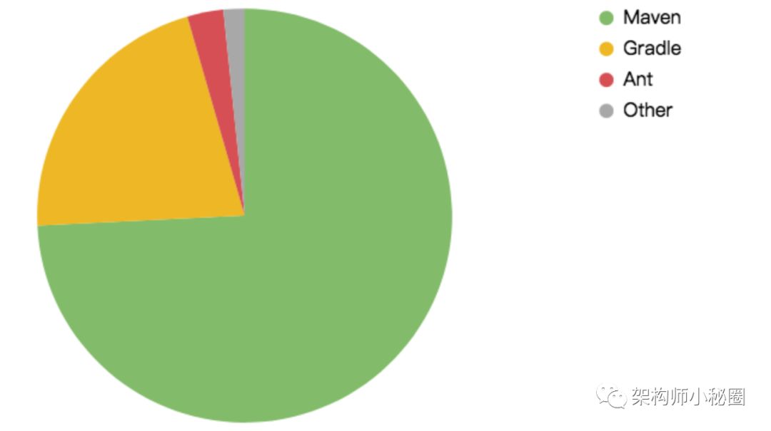 至于Gradle,它占据了市场的一小部分,主要来自Ant规模的缩小,现在只占市场的五分之1 ,即百分之21.3。