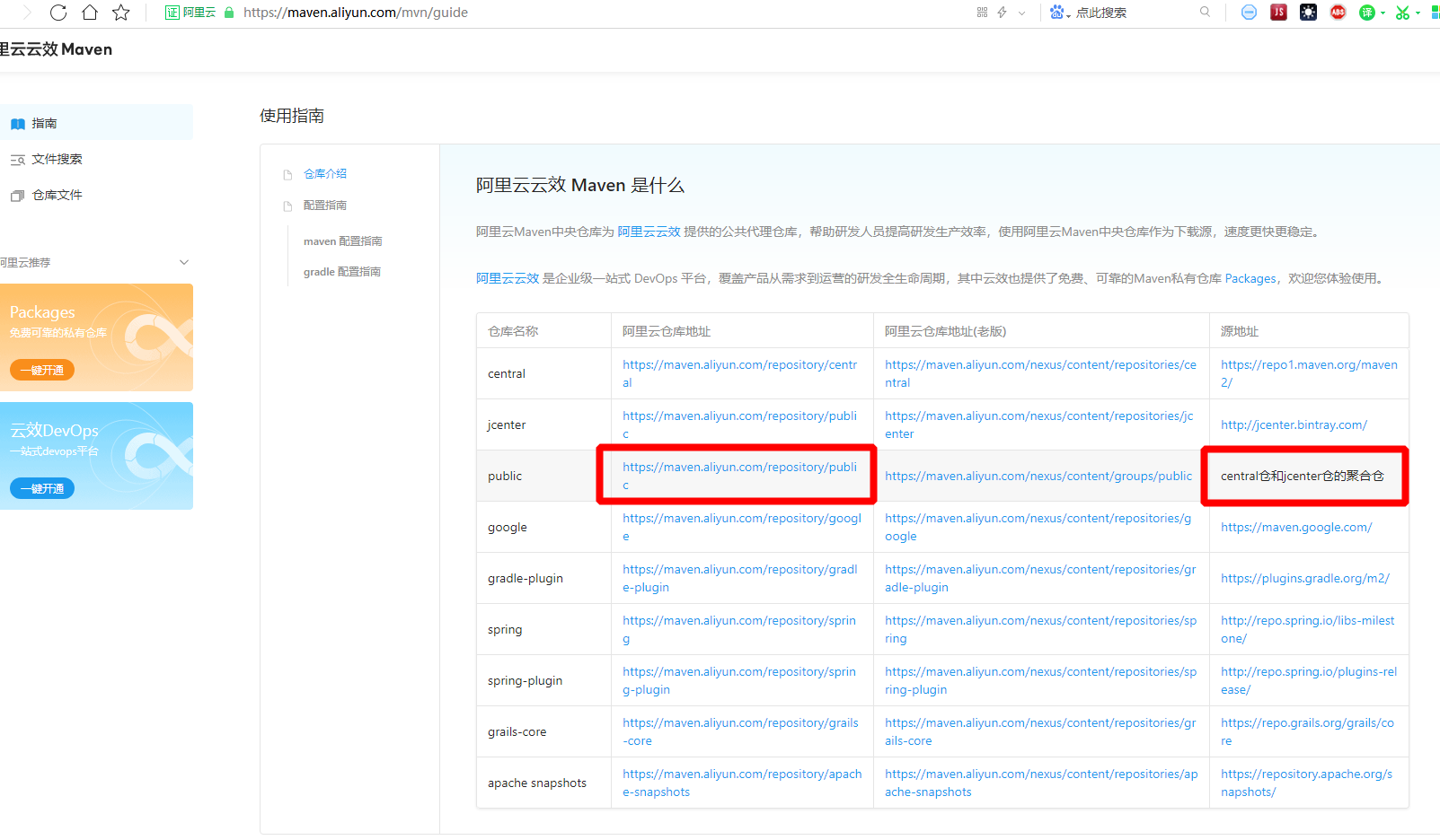 打开网址看一下阿里云maven库,选type为group的这个public库作为中央仓库的mirror(public库聚合了central 和 jcenter 两个库)