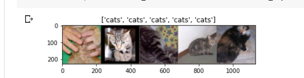 loader_train = torch.utils.data.DataLoader(dsets['train'], batch_size=64, shuffle=True, num_workers=6) loader_valid = torch.utils.data.DataLoader(dsets['valid'], batch_size=5, shuffle=False, num_workers=6) ''' valid 数据一共有2000张图,每个batch是5张,因此,下面进行遍历一共会输出到 400 同时,把第一个 batch 保存到 inputs_try, labels_try,分别查看 ''' count = 1 for data in loader_valid: print(count, end='\n') if count == 1: inputs_try,labels_try = data count +=1 print(labels_try) print(inputs_try.shape)