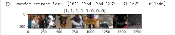 # 单次可视化显示的图片个数 n_view = 8 correct = np.where(predictions==all_classes)[0] from numpy.random import random, permutation idx = permutation(correct)[:n_view] print('random correct idx: ', idx) loader_correct = torch.utils.data.DataLoader([dsets['valid'][x] for x in idx], batch_size = n_view,shuffle=True) for data in loader_correct: inputs_cor,labels_cor = data # Make a grid from batch out = torchvision.utils.make_grid(inputs_cor) imshow(out, title=[l.item() for l in labels_cor])