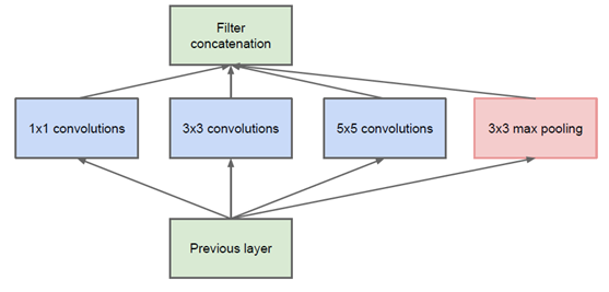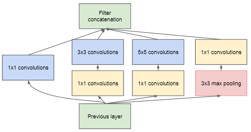 原始结构是将输入分别进行1x1卷积、3x3卷积、5x5卷积,3x3池化,然后将这4个结果在通道数目上拼接。通过多个卷积核提取图像不同尺度的信息,最后进行融合,可以得到图像更好的表征。每个卷积层后面都有非线性激活函数。
