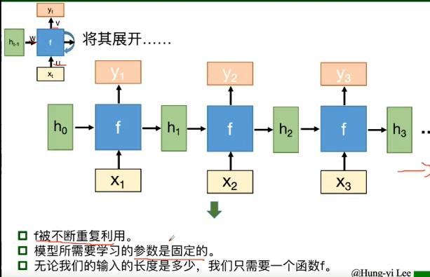 输出y不仅由当前的输入所决定,还会考虑到之前的“记忆“。由两者共同决定