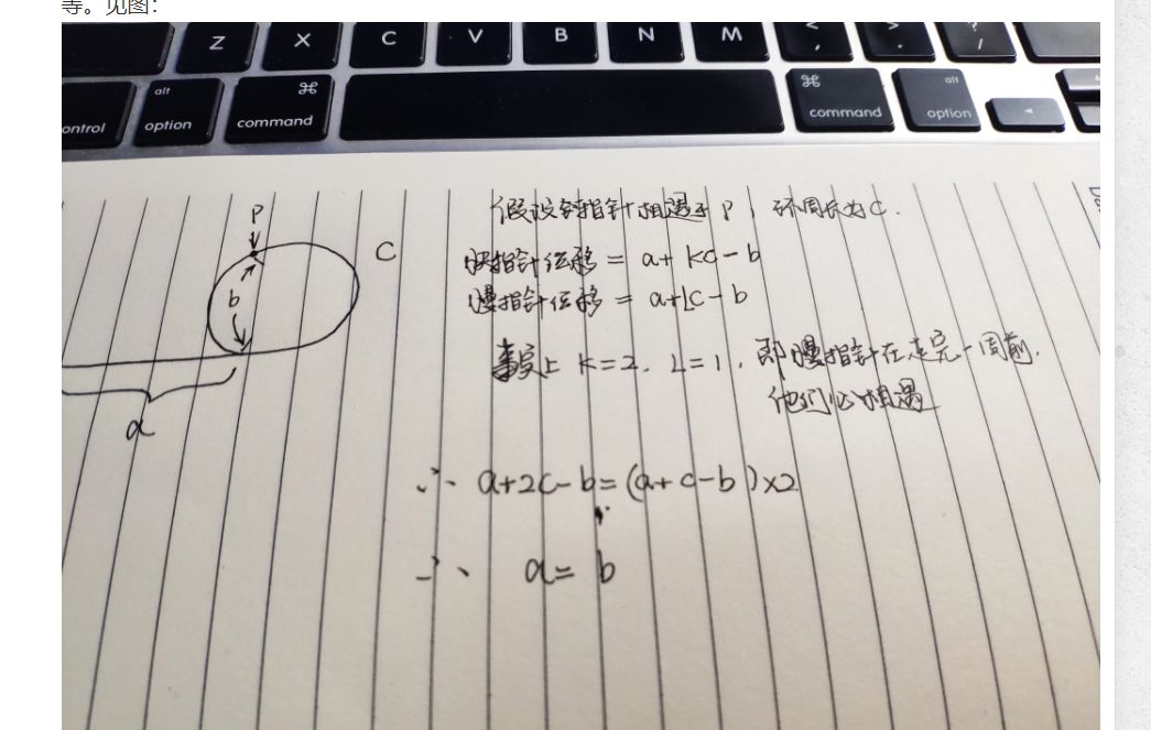我们便可以得出一个结论 a = 变化后的b 即相遇的地点与环起点相距b