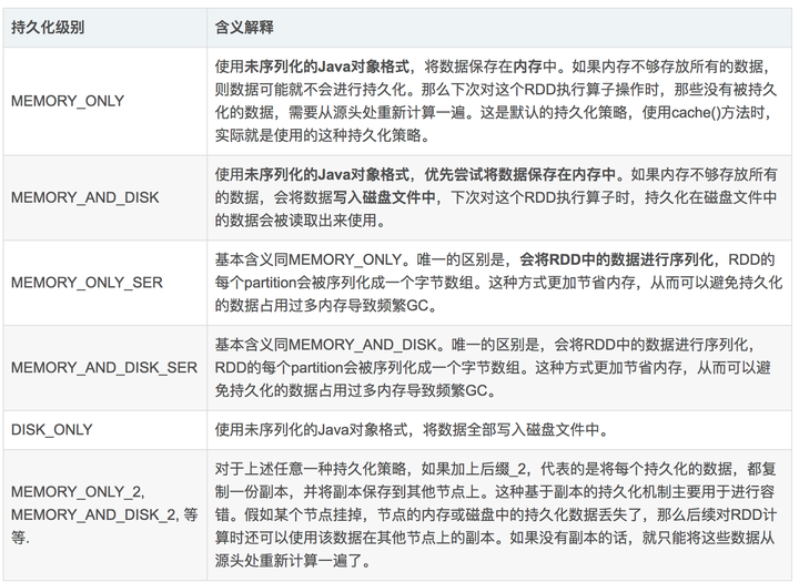 Spark中对于一个RDD执行多次算子(函数操作)的默认原理是这样的:每次你对一个RDD执行一个算子操作时,都会重新从源头处计算一遍,计算出那个RDD来,然后再对这个RDD执行你的算子操作。这种方式的性能是很差的。