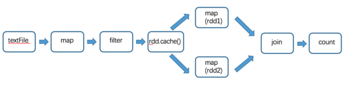 所以可以在 rdd 生成之后使用 cache 函数对 rdd 进行缓存,这次就不用再从头开始计算了.缓存之后过程如下:
