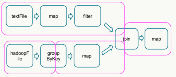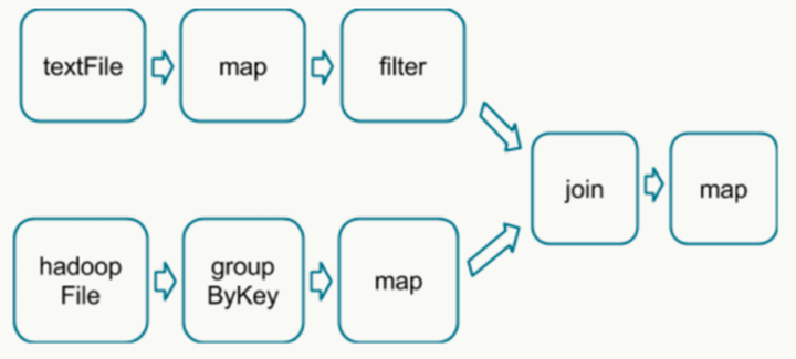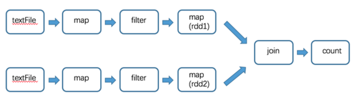 如下 DAG 流程图中,分别读取数据,经过处理后 join 2个 RDD 得到结果