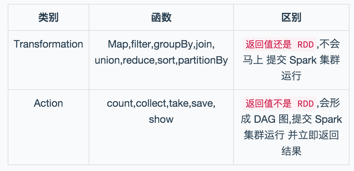 3).RDD 的操作函数(operation)主要分为2种类型 Transformation 和 Action.