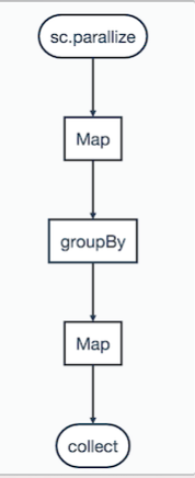 首先,当你在解释器里一行行输入的时候,实际上 Spark 并不会立即执行函数,而是当你输入了val result = rdd2.collect()的时候, Spark 才会开始计算,从 sc.parallize(arr) 到最后的 collect,形成一个 Job.