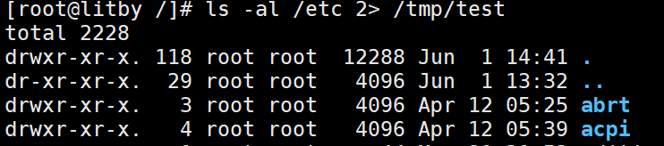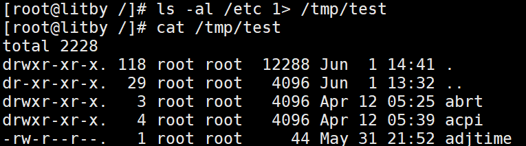 (由于命令的输出是标准输出,因此输出内容并不会被输入到文件里面,依旧输出到终端)