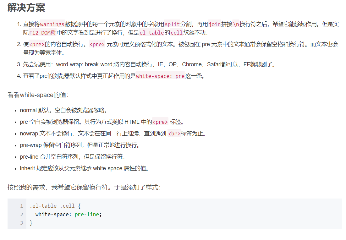 element-table 行内cell文字换行