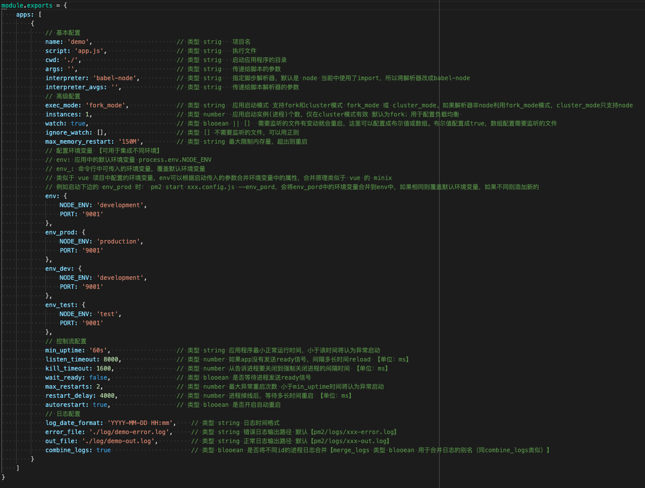 - 配置完成之后,通过 pm2 start xxx.config.js(配置文件)启动项目