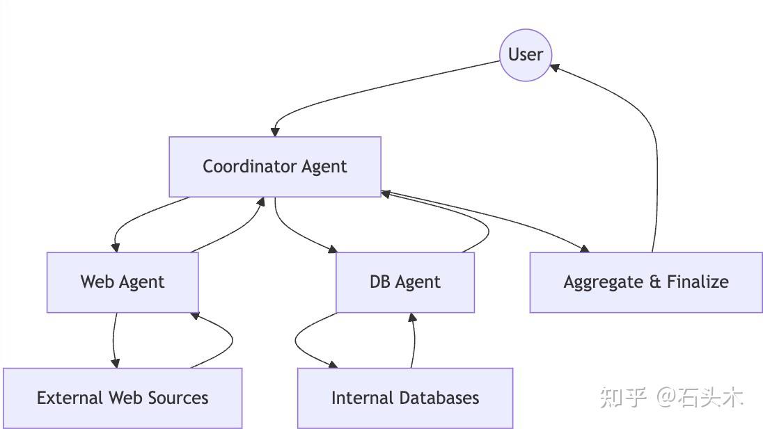 - 以及一个协调代理,它将问题委托给适当的专家,然后汇总结果。