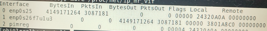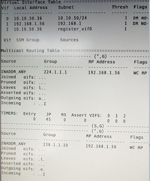 (10.10.50.12, 238.1.1.10) Iif:enp0s25 Oifs:enp0s26f7u1u3 State:resolved
