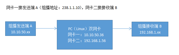 环境如上,之所以用Linux进行转发,是因为需要用到Linux TC(traffic control)模块,对组播数据进行延时,丢包或者其他处理,测试接收端对组播数据的恢复处理能力。