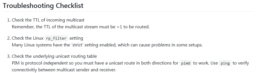 22:50:27.666 For src 169.254.0.1, iif is 1, next hop router is 192.168.1.1: NOT A PIM ROUTER