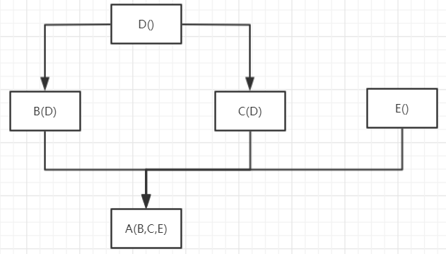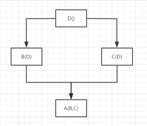 深度优先:当调用A类test函数时,如下图所示,先查找A类中有无test函数,再查找B类,再查找D类,最后查找C类。