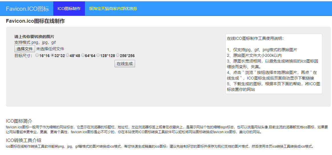 要为应用程序添加图标首先需要准备好一张.ico格式的图片文件,普通的图片不行。这里我们可以使用这个网站http://ico.hillcloud.net/,将普通图片上传到该网站进行在线转换,然后下载备用,并将该图片重新命名为: myapp.ico