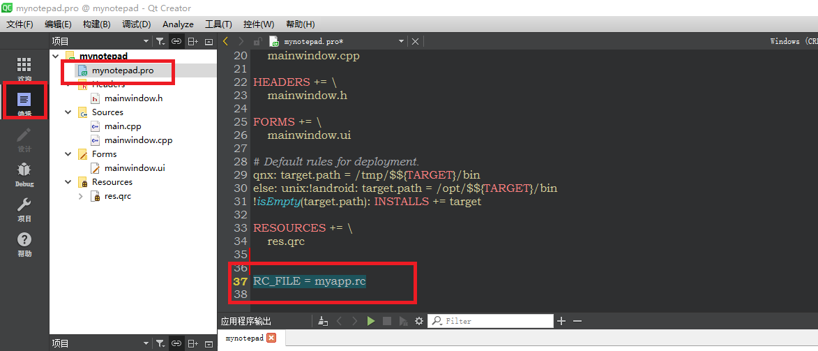 再回到工程的编辑界面,打开工程的配置文件(.pro结尾的文件),在最下面添加代码: