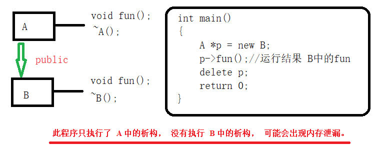 只析构了 A 类的部分, B 类的扩展部分没有析构回收。 造成内存泄漏
