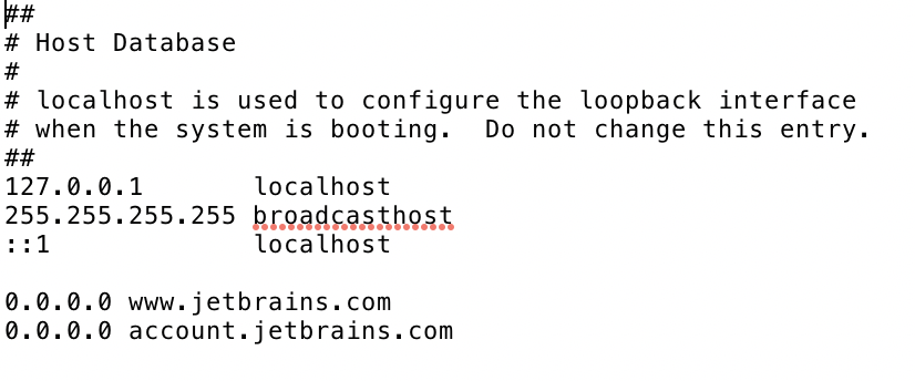 将“0.0.0.0 account.jetbrains.com”和“0.0.0.0 www.jetbrains.com”添加到hosts文件中,两个都必须添加。