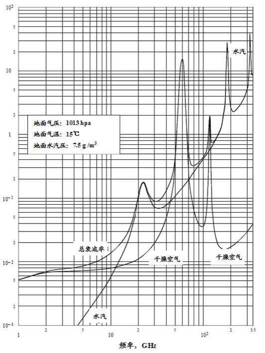 图 1电磁波辐射在晴朗天气所受大气衰减与频率的关系