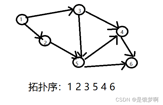 那拓扑序就是,图中任意一对顶点\(u\)和\(v\),若边\(<u,v>∈E(G)\),则\(u\)在线性序列中出现在\(v\)之前