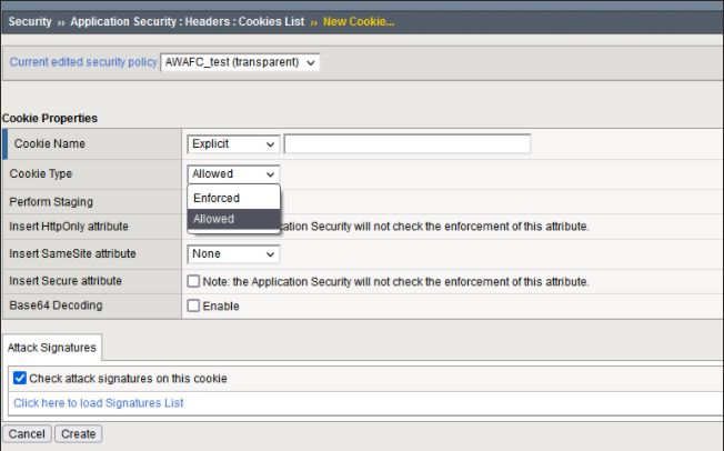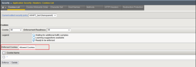 AWAF将Cookie分为两种,分别是Allowed和Enforced